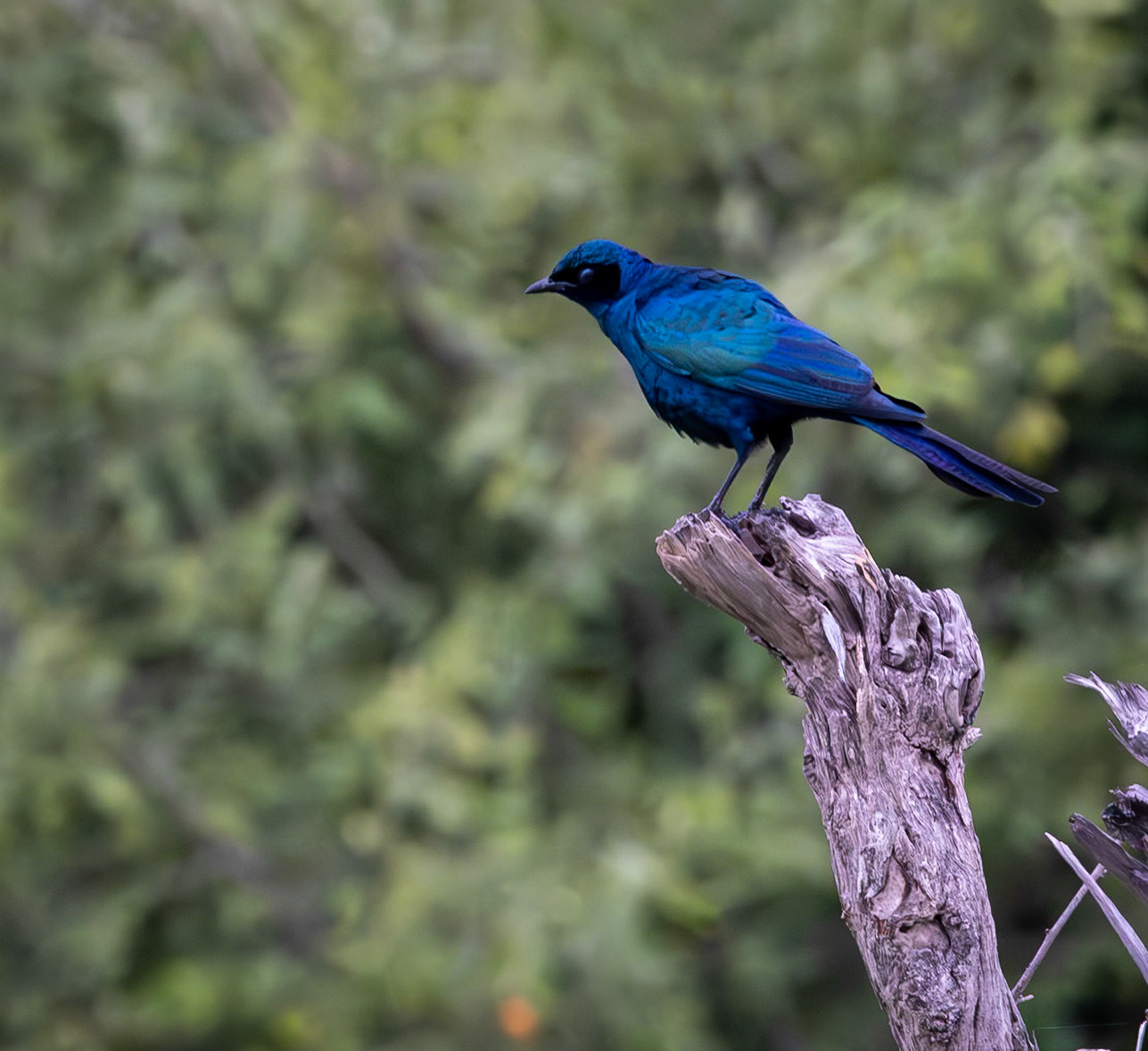 A Lilac-breasted Roller resting on a post in the Okavango Camp, Botswana